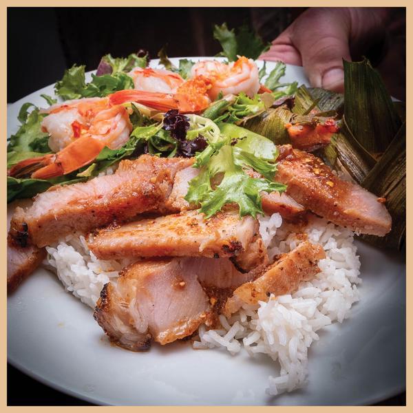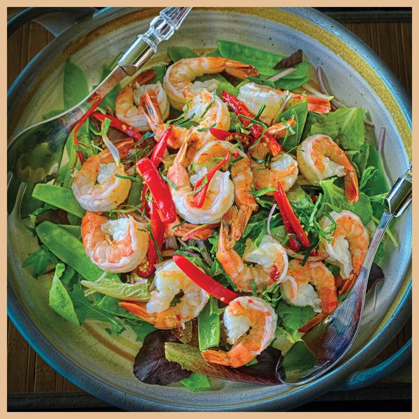 Here, I sampled all the best this riverside region had to offer. So, on the menu Saturday are: Tiger Prawn Salad with Snow Peas, Leaf-Wrapped Chicken, Barbecued Pork, Mekong Salad Rolls, and