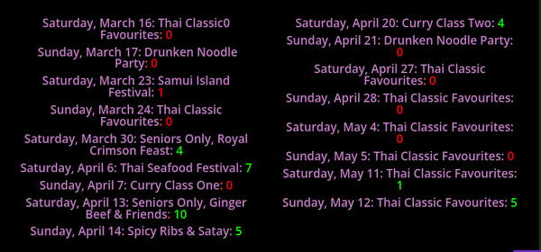 are still travelling through Thailand, researching new recipes, we are not available at our usual phone number.