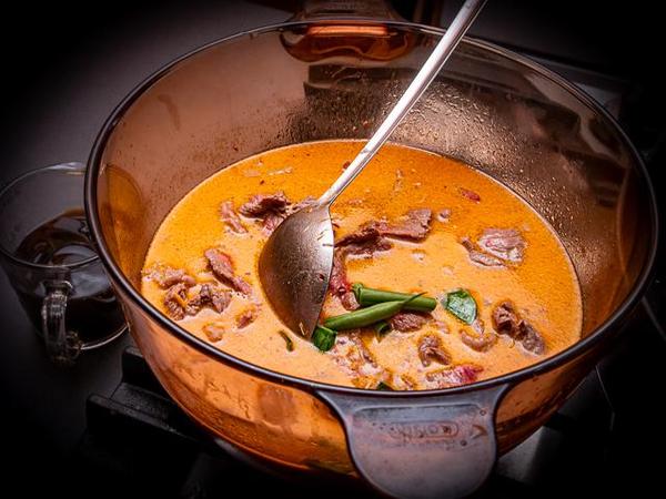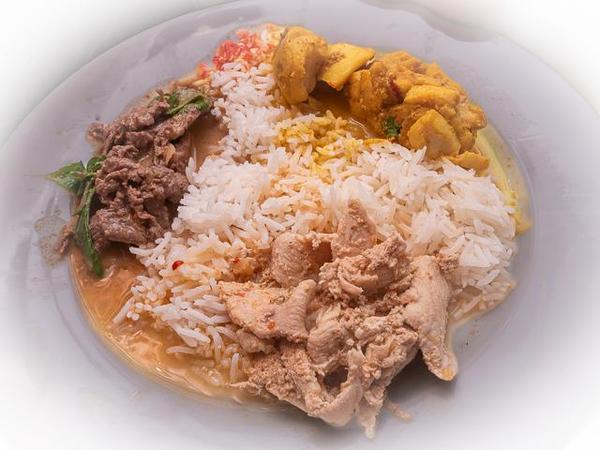 A serving from the class of Yellow Curry, Panang Beef and Red Curry Chicken.