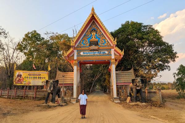 Here I am at the entrance to Wat Dune, along with elephants and a sacred cow.